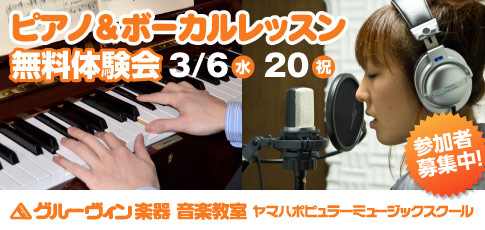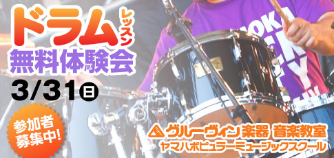 グルーヴィン楽器音楽教室では、この春、レッスンの無料体験会を開催いたします。